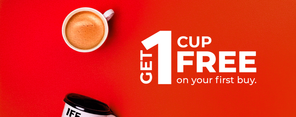 - Get a Free Cup on Your First Purchase.